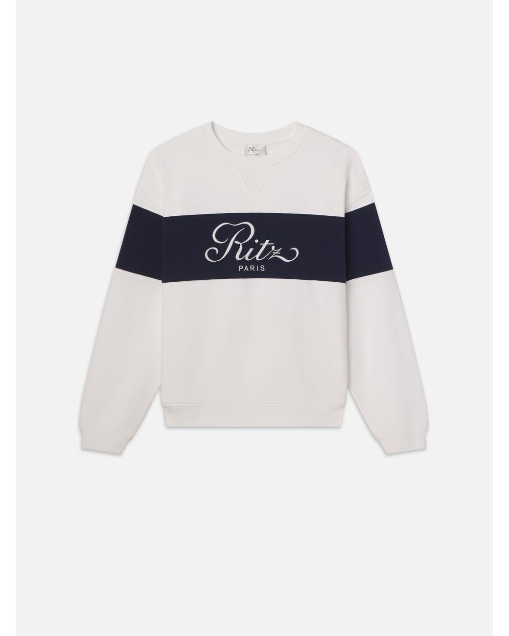 Polished sweatshirts do exist. This sporty style has a solid stripe that runs across the body and sleeves for a consistent look that attests to a luxe, detail-oriented design. With Ritz Paris embroidery and pure cotton construction, this piece is sure to elevate your sweatshirt roster. Featuring side seam pockets for a modern touch. Colour: blue