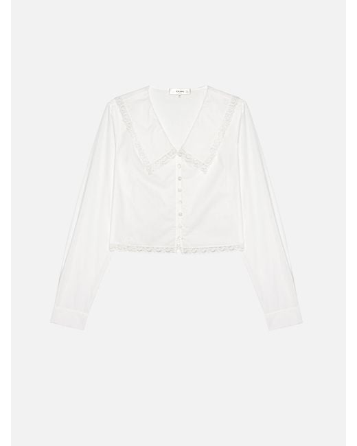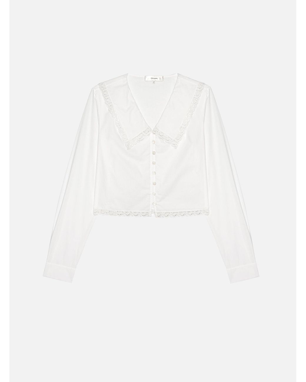 This 100% cotton blouse updates a best-selling silhouette with lace trim, delicate buttons, and slightly oversized sleeves for an effortlessly romantic finish. Colour: white