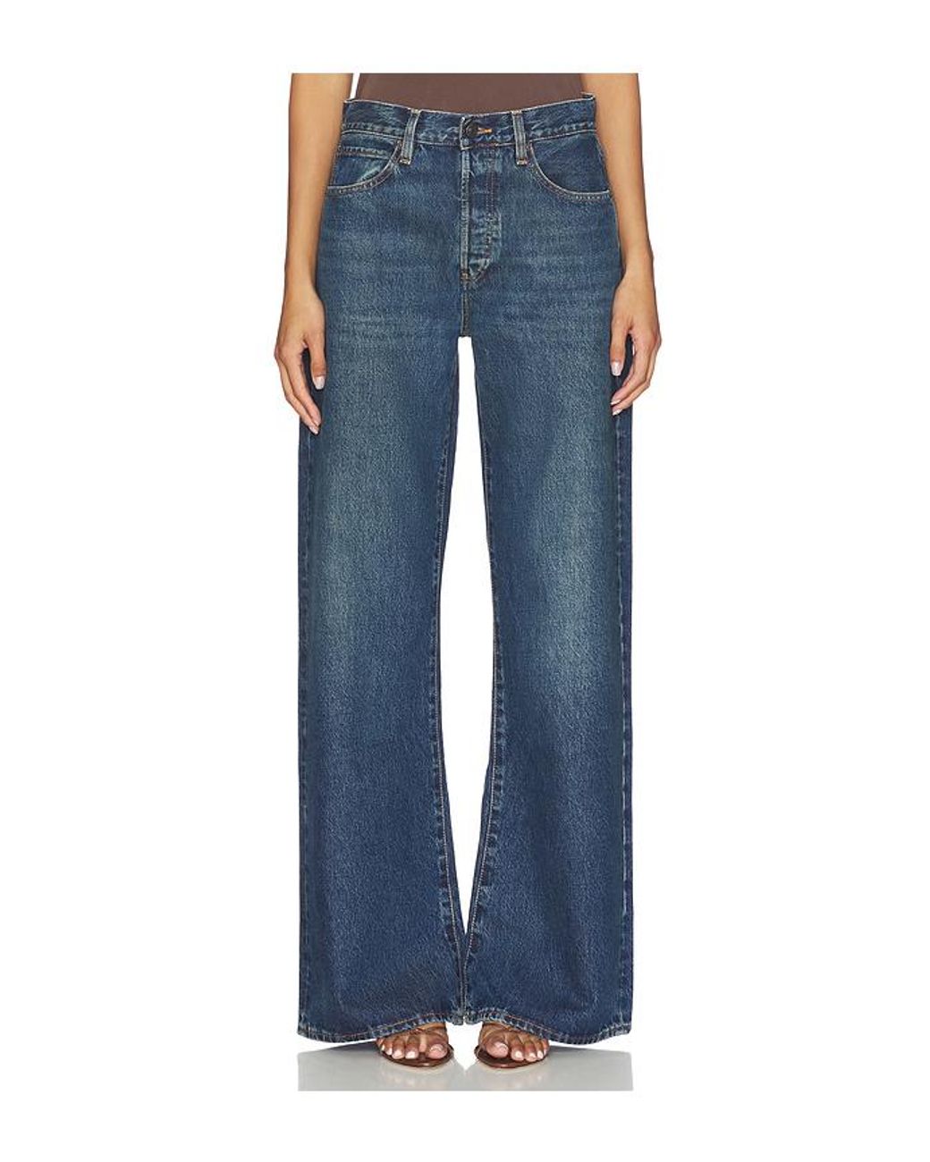 FRAME The Loose in Blue.. Size 27. Also in 28, 30. FRAME The Loose in Blue.. Size 28, 30. 100% cotton. Made in Tunisia. Machine wash. Button fly with button closure. 5-pocket styling. Midweight denim textile. Leg opening measures approx 24. FAME-WJ491. 2002210. FRAME is a modern fashion brand celebrated for its refined aesthetic and effortless approach to everyday dressing. Since its founding in 2012, FRAME has become synonymous with contemporary luxury rooted in quality craftsmanship and cultural relevance.Bridging California's ease and Parisian sophistication, FRAME draws inspiration from the worlds of fashion, art, design, and lifestyle creating collections that capture a timeless yet modern sensibility. Beyond fashion, the world of FRAME continues to expand through meaningful cultural collaborations from hotels to auction houses, establishing the brand as a destination where style, creativity, and culture intersect. Today, FRAME is recognized globally for its ready-to-wear, denim, and accessories, with more than 20 stores across North America, Europe, and Asia, and distribution through leading department stores and boutiques worldwide.