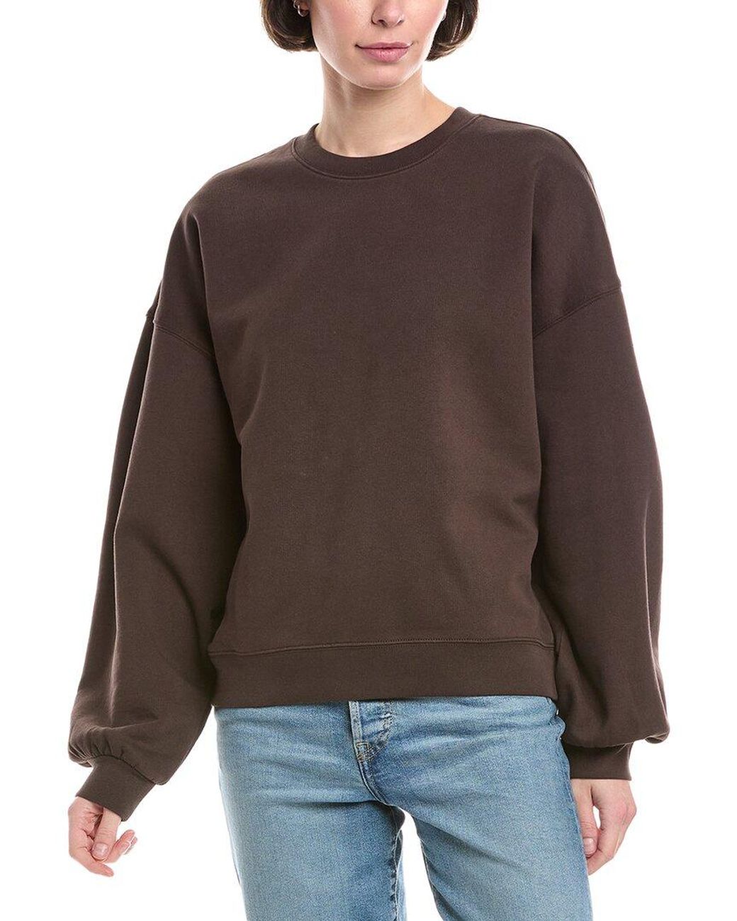 About the brand: Dressed-up casual with European influences. Travel Crewneck Sweatshirt in mulch Approximately 24in from shoulder to hem Model is 5'9 and is wearing a size small. Measurements may vary slightly by size. 85% cotton, 15% polyester Machine wash Imported Colour: brown