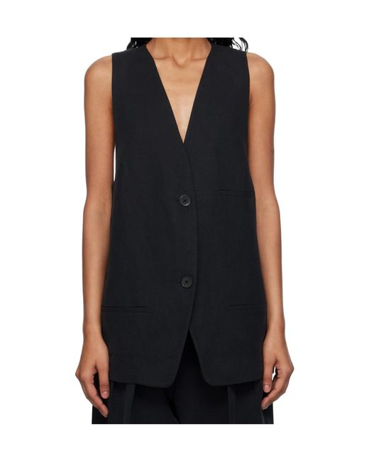 Women's Black Button Vest