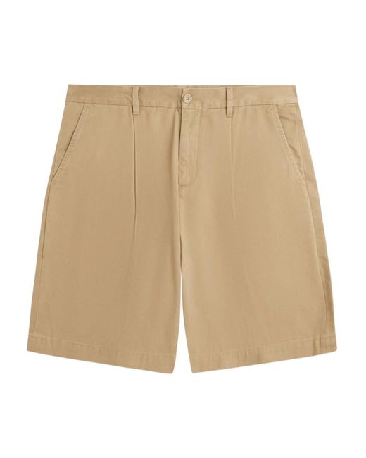 Inspired by traditional British tailoring, our pleated long shorts are a casual garment with formal touches. Made of cotton twill with a sanded finish for a soft feel and luxurious herringbone pockets, they elevate your everyday wear. 100% cotton. Machine washable. Colour: natural
