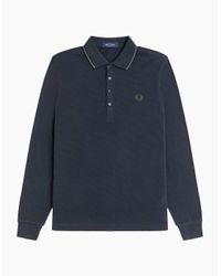 Go to MainlineFred Perry Textured Long Sleeve Polo T Shirt In Navy Regular Fit. Cotton pique fabric with a four button placket and a ribbed polo collar which features a tipped design. Ribbed cuffs on