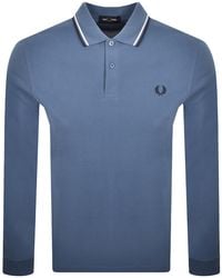 Fred Perry Men's Blue Textured Long Sleeve Polo