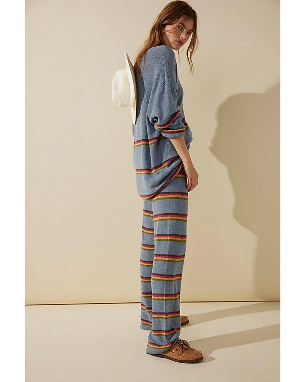 So perfect in stripes, this sweater set from our free-est collection is a cozy instant outfit. **Fit:** Top: Oversized, slouchy fit; Pants: Mid-rise, wide-leg relaxed fit **Features:** Top: Crew neckline, dropped shoulders, cozy rib knit; Pants: Drawstring waistband, pull-on design, multicolor stripe design **Why We Mariner Sweater Co-Ord by free-est at Free People in Dusty Blue, Size: XS