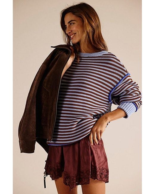 We're seeing stripes with this staple pullover from We The Free, featured in a classic cotton knit with contrasting piping and ribbed trims for the perfect bold-yet-go-to option. * Rolled boat neckline * Oversized fit * Dropped shoulders We The Free Asher Pullover at Free People in Blue Combo, Size: XS Colour: blue