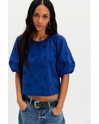 Go to Free PeopleEmbody effortless whimsy with this airy tee, featuring a cropped, boxy silhouette, exaggerated puff sleeves, and a lightweight cotton-blend fabrication for a breezy feel. * Rounded neckline * Delicate eyelet design * Raglan,