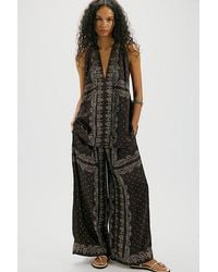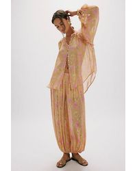 Go to Free PeopleSo breezy and billowy, this airy pant set features a lightweight fabrication, a subtle peplum top design, and effortless balloon-style trousers. **Top** * Short puff sleeves * Square neckline * Full-length * Lace