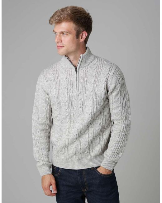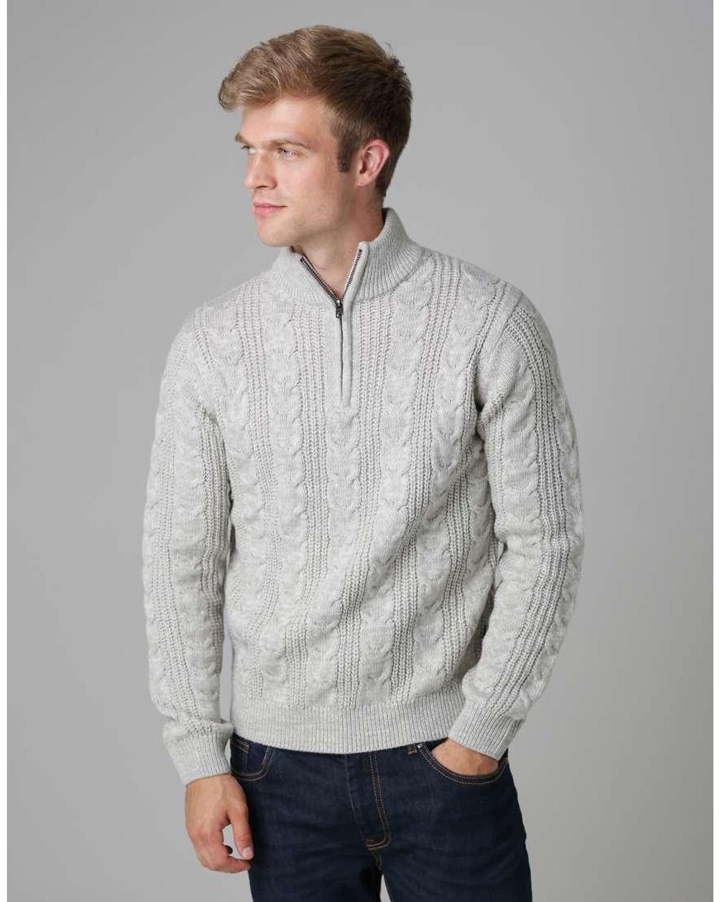 Men's Grey 1/2 Zip Cable Knit Jumper