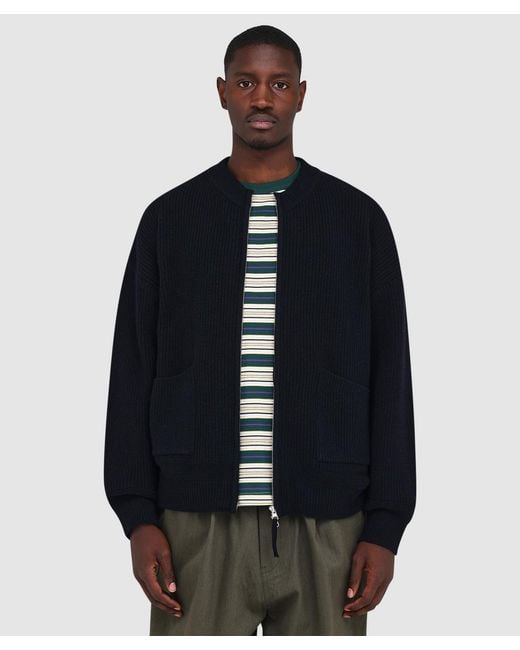 Frizmworks nods to classic military knitwear with the Wool deck cardigan, offering a modern, functional layer shaped a focus on quality craftsmanship. Relaxed fit Ribbed crewneck Two-way YKK zip fastening Dual slip pockets Ribbed trims 60% wool, 30% nylon Item code: FZW2024SSKN011 Colour: blue