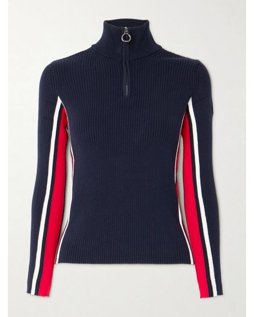 Women's Blue Deltanao Striped Ribbed-Knit Half-Zip Jumper