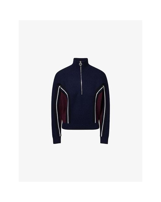 Women's Blue Mirala Stand-Collar Knitted Merino-Wool Jumper