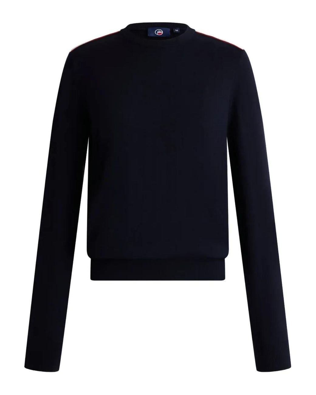 Navy blue striped detail round neck long sleeves ribbed hem Size: XS. Gender: Female. Material:Wool/Viscose/Polyester. Colour: blue