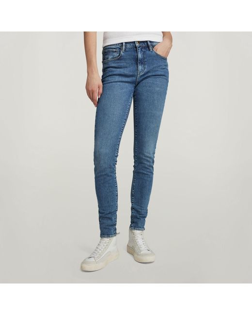 High waist. 5 pockets. Tight from waist to hem. Zip fly. G-Star RAW label at the back, made from a leather-like paper fabric. Zip & button closure. Mid waist. This superstretch denim is partly made of recycled cotton, which is obtained by the recycling process of bed linen. As a result the weft color is unique. By using Dry Indigo in the dyeing process no water is used or wasted, 89% less chemicals are utilized and 65% of the energy is saved in the entire process. By growing and processing the cotton in Spain where this fabric itself is created, the CO2-footprint is kept at a lower level. Weight 10.5 oz denim. 3x1 right hand twill construction. Skinny
