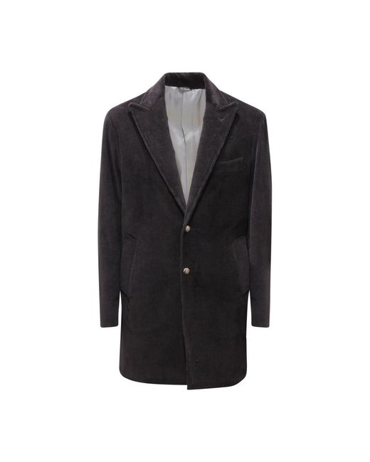 Elevate your style with this Gabo Napoli single-breasted coat for men. Made in Italy, this coat features a velvet corduroy fabric in black with a semi-lined interior. Model: City PL T 23306 Col. 6 Nero Drop 7. Colour: black