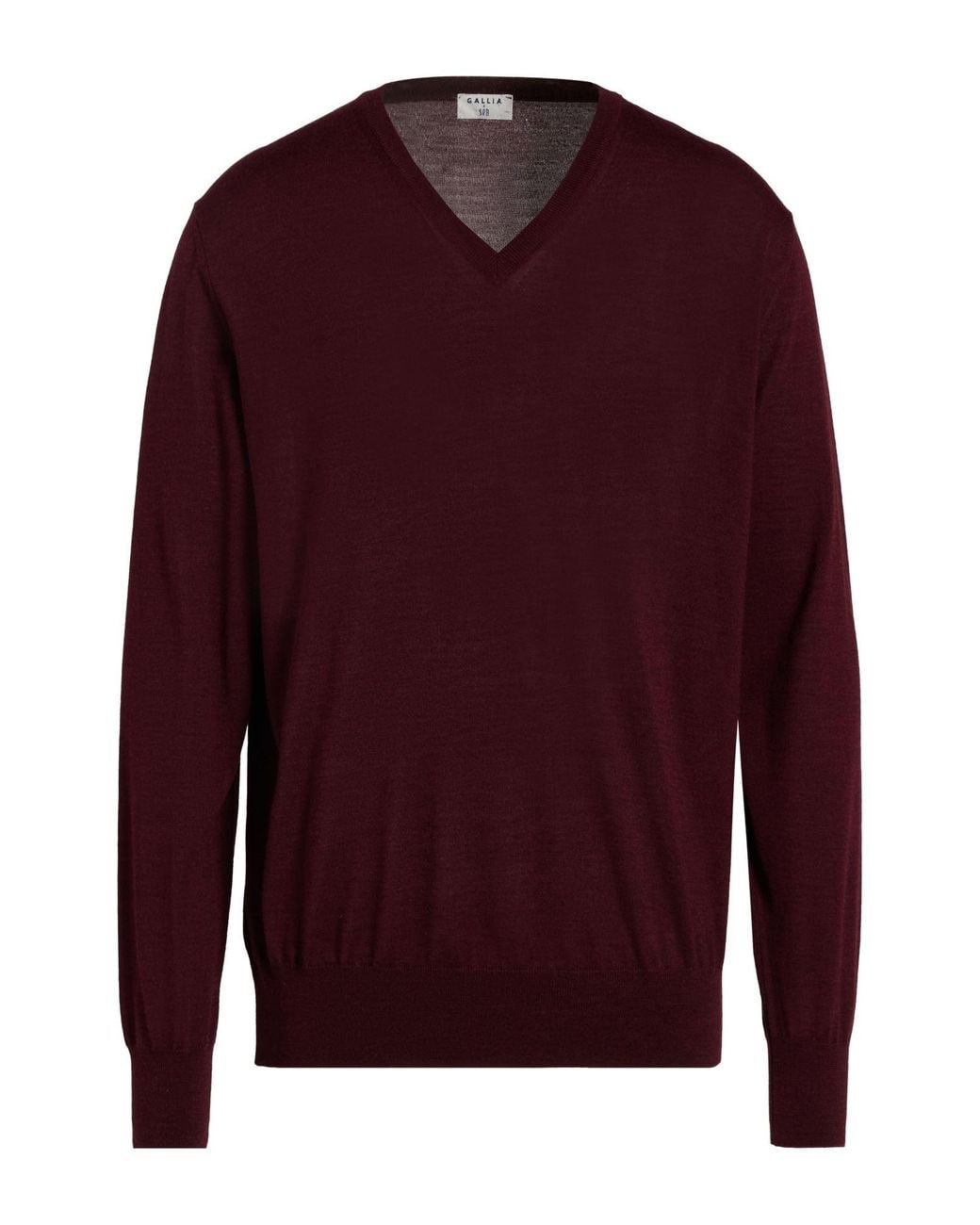 GALLIA. knitted, mid-weight knit, no appliqués, plain colour, v-neck, long sleeves, hand wash or dry clean, do not bleach, do not tumble dry. 70% Merino Wool, 30% Silk.