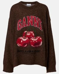 Go to RboutiqueJumper made from soft alpaca-blend yarn, enriched with jacquard "GANNI" logo and banana graphic at front. Ribbed crewneck, cuffs nd bottom hem. Oversized fit with dropped shoulders. Colour: black