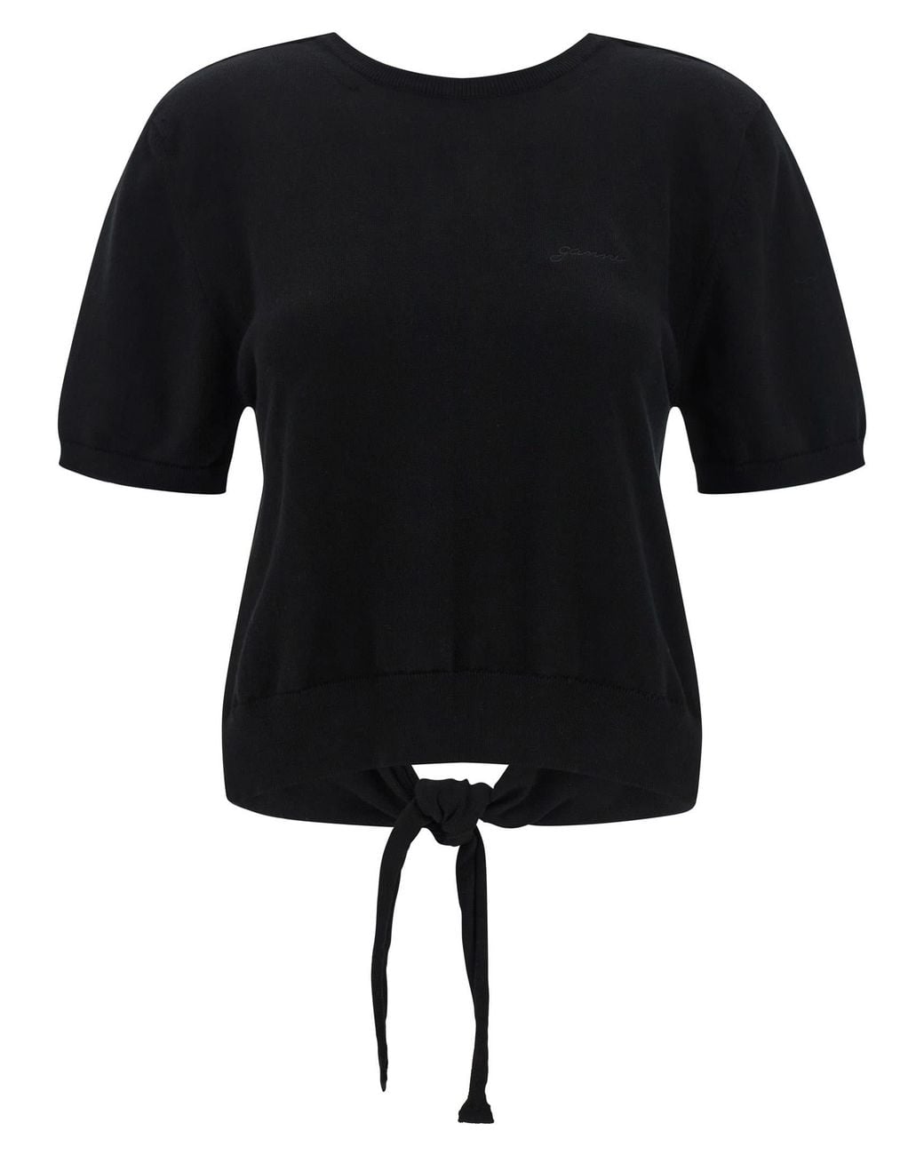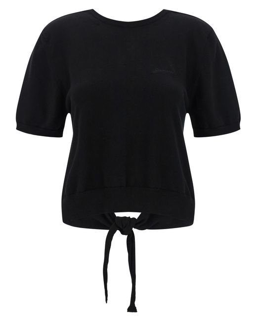 Cotton sweater with tone-on-tone embroidered logo on the front, round neckline, bare back with knotted ribbons, and short sleeves with cuffs. SUSTAINABLE: This product is made of organic cotton. Composition: 100% organic cotton