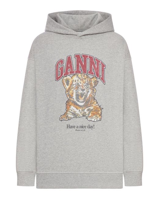 Hood. Long sleeves. Ribbed cuffs. Tiger print graphic. GANNI logo. Have a nice day!