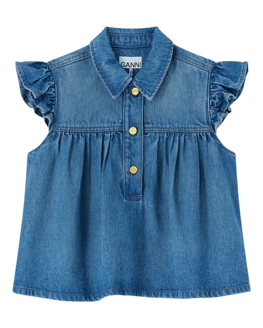 Women's Blue Denim Ruffle Top