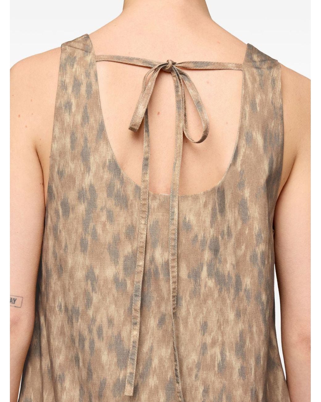 Beige and grey all-over print square-neck tiered ruffles sleeveless tie-fastening. . Composition 3 Elastane,97 Organic Cotton Colour: brown
