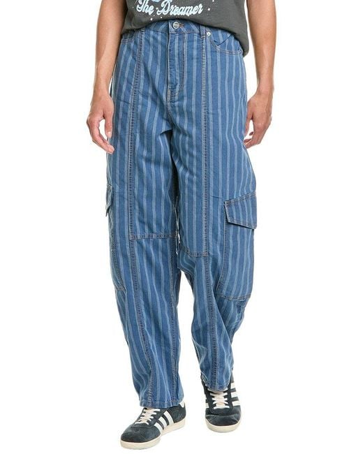 Women's Blue Light Stripe Denim Cargo Pant