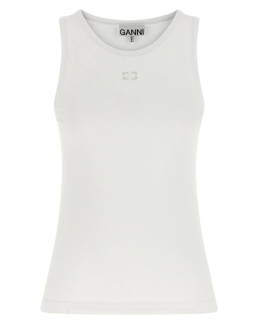 Ribbed stretch cotton tank top with tone-on-tone embroidered logo on the front. Composition: 95% cotton, 5% elastane. Size&Fit: true to size fit. Colour: white