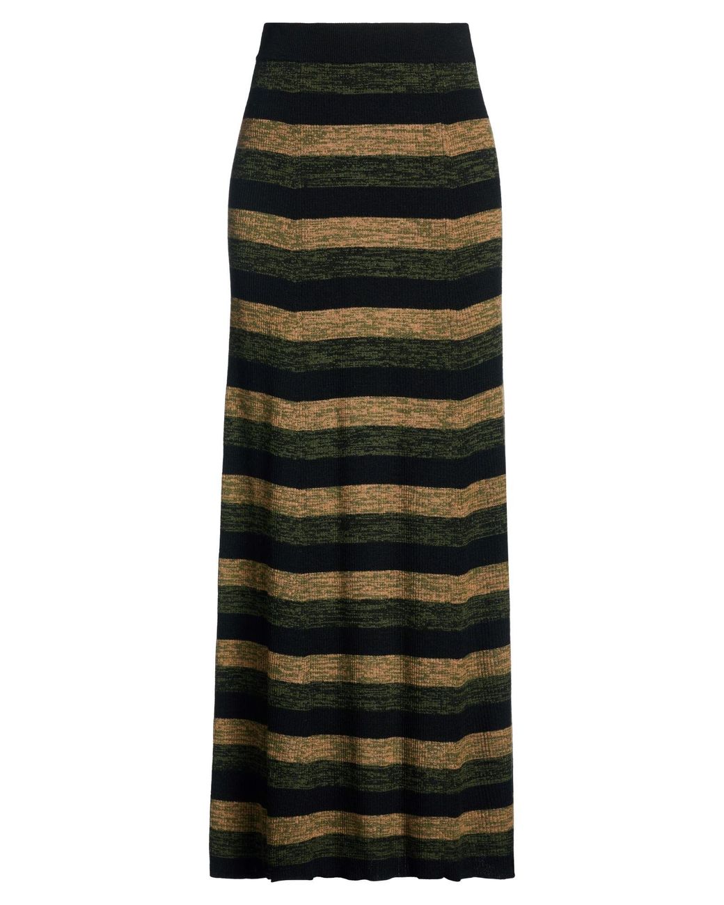 GANNI. flared skirt, wool, lightweight knit, striped, no appliqués, elasticised waist, unlined, hand wash, do not bleach, do not tumble dry. 100% Merino Wool.