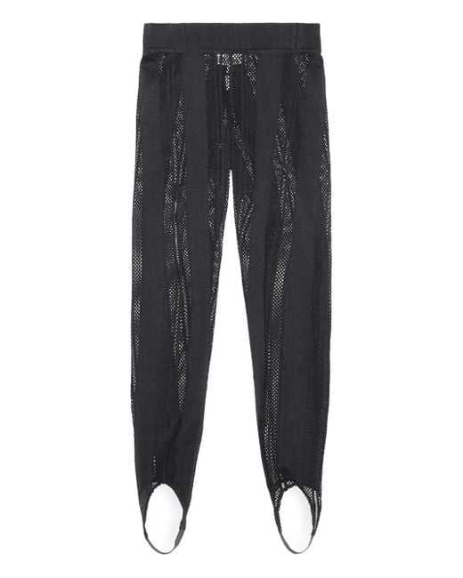 Women's Blue Mesh-Panelled Stirrup Leggings
