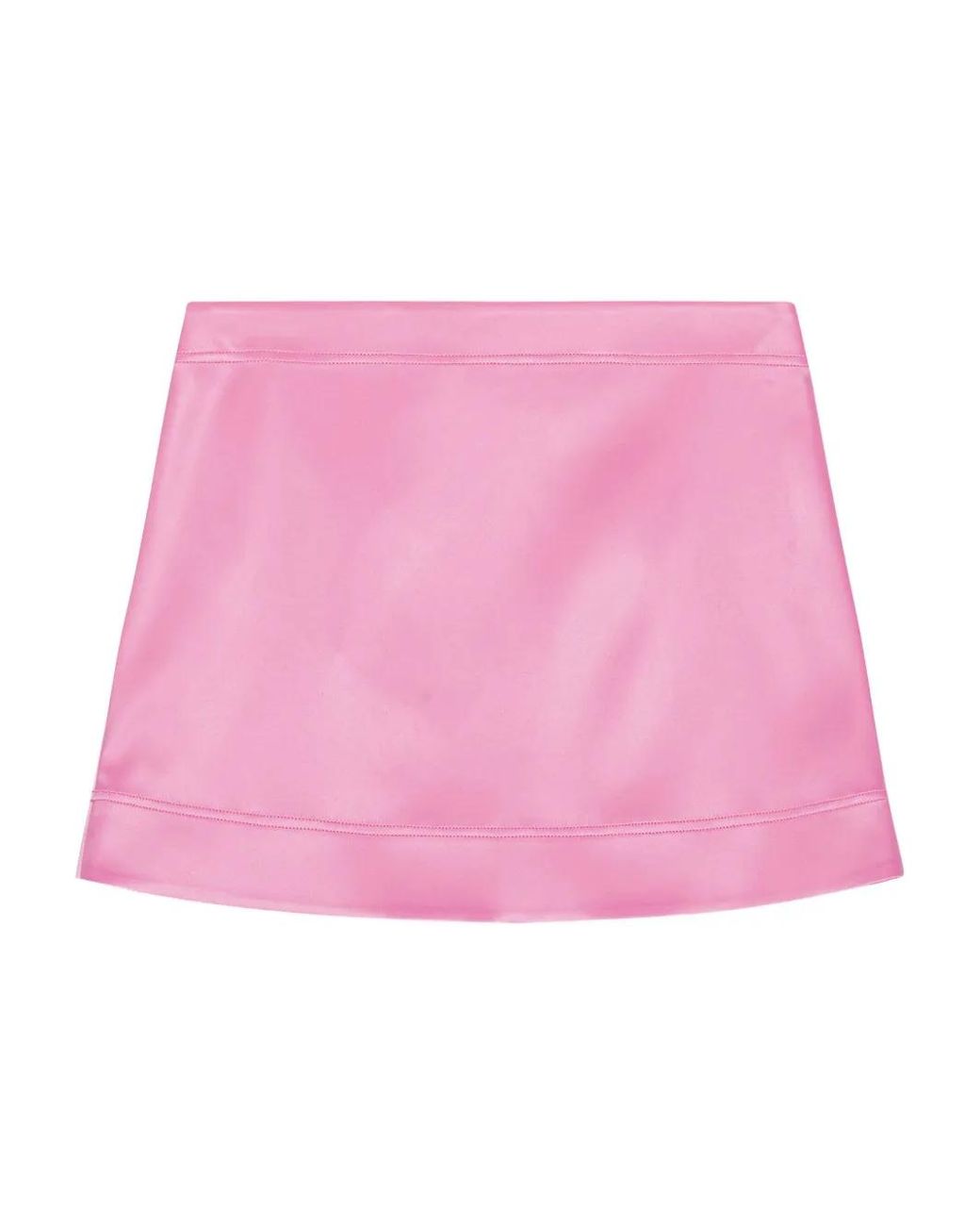 Pink satin fabric straight hem A-line shape concealed zip fastening Size: 32. Gender: Female. Material:Satin. Colour: pink