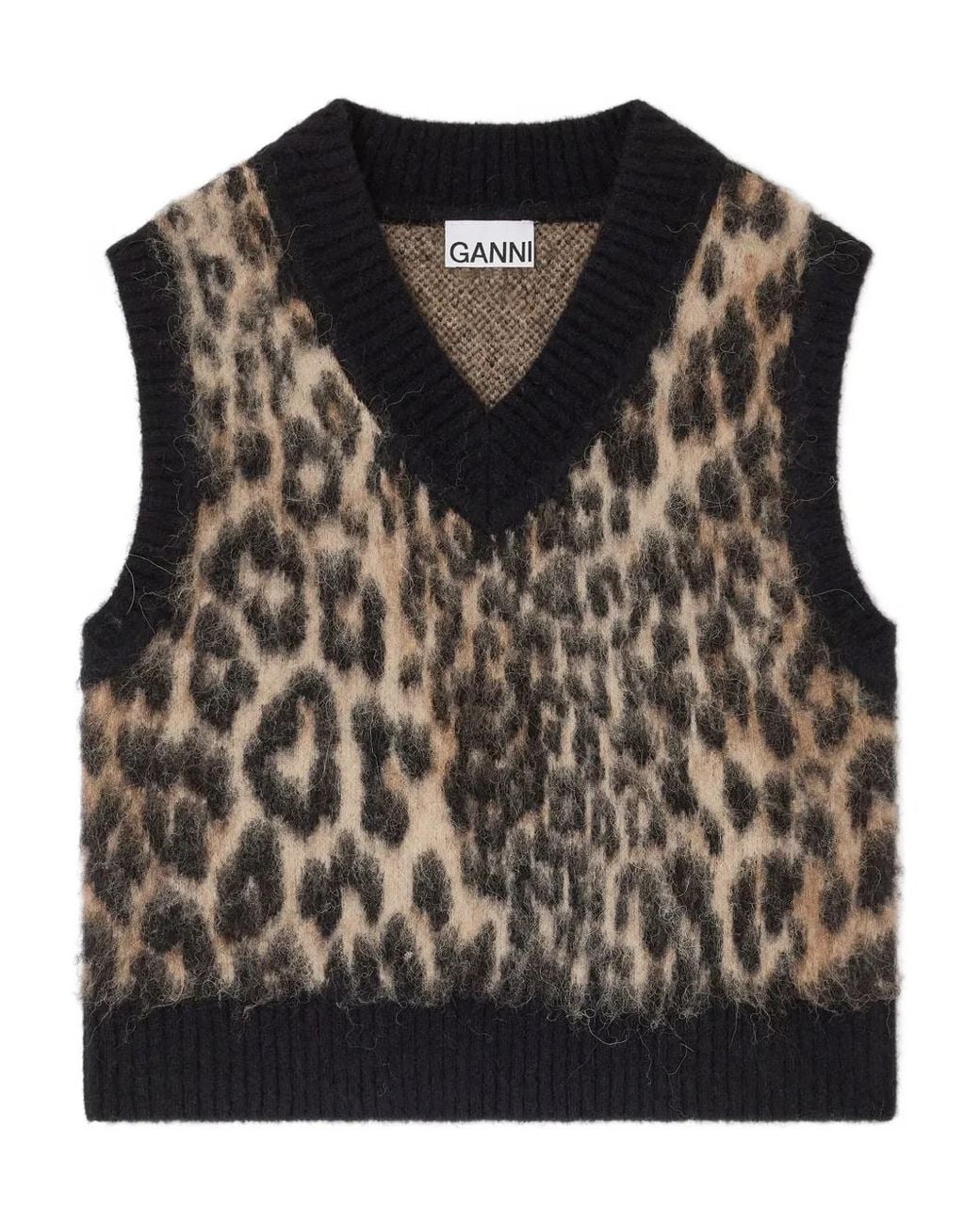 Beige and black leopard print V-neck sleeveless ribbed hem Size: XS. Gender: Female. Material:Alpaca Wool/Merino/Polyamide/Elastane. Colour: black