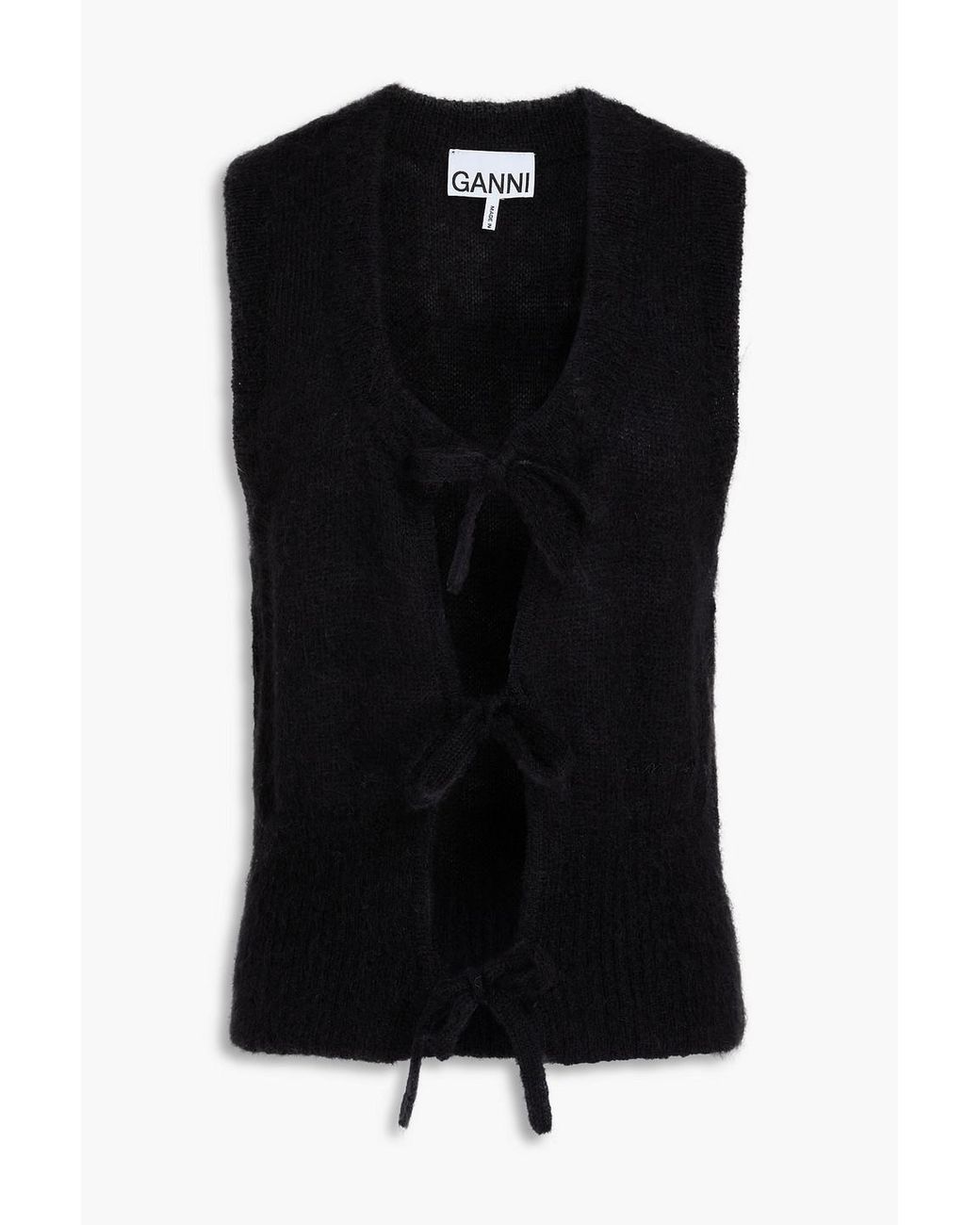 Women's Black Bow-detailed Brushed Mohair-blend Vest