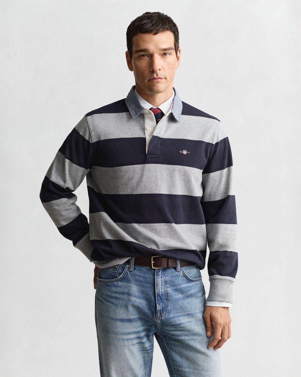 Featuring a small-scale GANT shield graphic embroidered at the chest, this striped rugger is crafted from 100% cotton and designed with a regular fit. Timeless, classic and versatile, the design is complete with a chambray collar and a classic three-button placket.