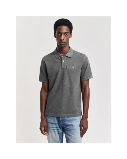 Men's Grey Melange Embroidered Archive Shield Polo Shirt