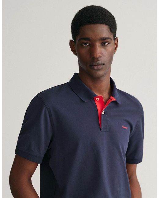 Men's Blue Regular Fit Short Sleeve Contrast Pique Rugger
