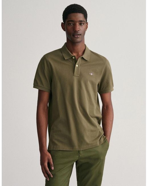 Men's Green Regular Fit Short Sleeve Shield Logo Pique Polo