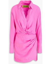 GAUGE81 Women's Green Gravia Draped Wrap-effect Silk Crepe De Chine Mini Shirt Dress