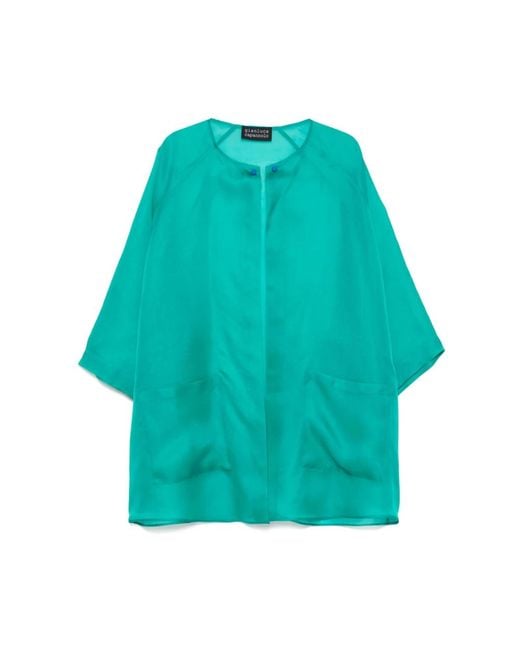 Elevate your style with this teal blue Gianluca Capannolo single-breasted coat. Featuring an open front, two front patch pockets, half-length sleeves, and semi-sheer construction, this coat is a must-have for the fashion-forward woman. Colour: blue