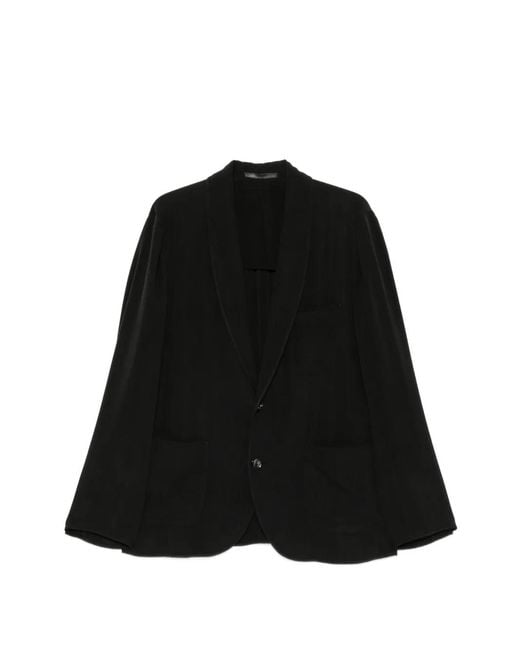 Men's Black Shawl-Lapel Patch-Pocket Blazer