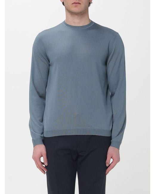Silk Blend Jumper Long Sleeves Crew Neck - Blue