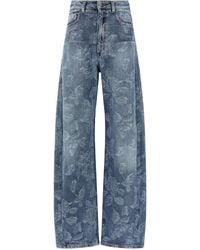Go to YOOXStraight-leg jeans, denim, solid colour with appliqués, crystals, studs, medium wash, high waisted, regular fit, 1 button, zipper fastening, hand wash, do not bleach, do not tumble dry , Color: Blue , Size: