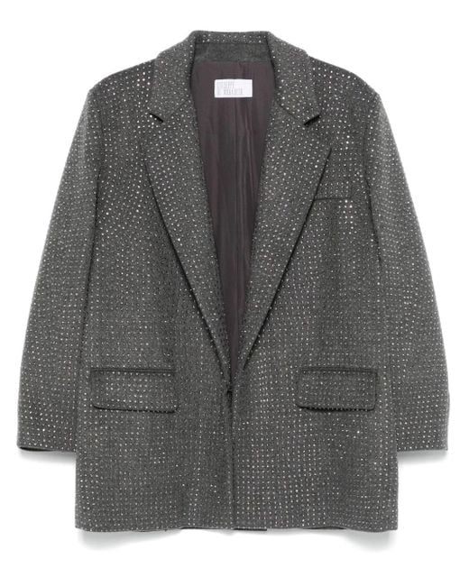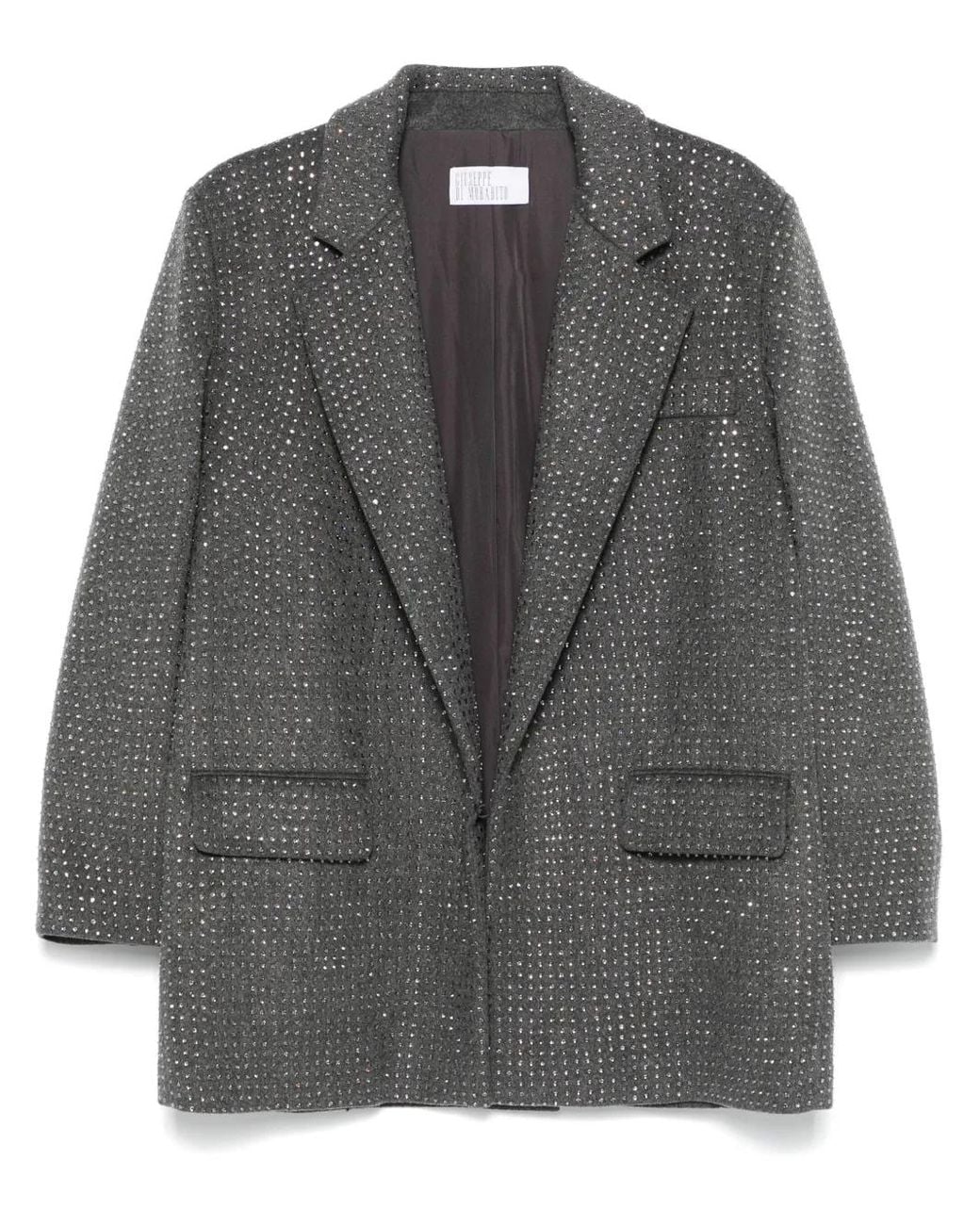 Women's Grey Rhinestone-Embellished Wool-Blend Blazer