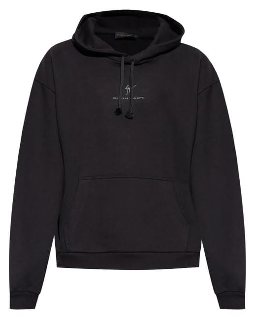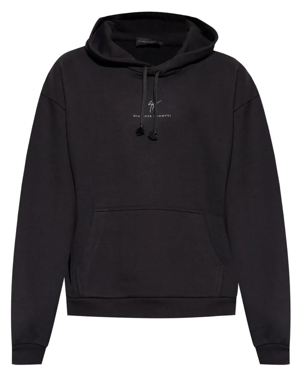 Black cotton embroidered logo at the chest drawstring hood long sleeves ribbed cuffs front pouch pocket straight hem Size: XS. Gender: Male. Material:Cotton.