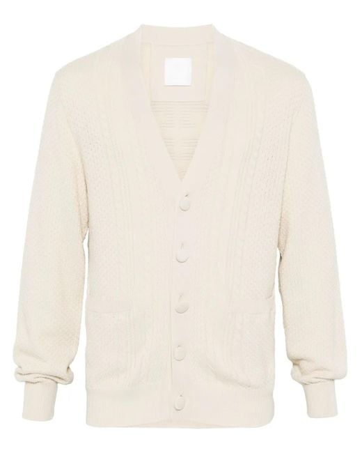 Ecru cotton cable knit honeycomb knit signature 4G motif to the rear front button fastening ribbed V-neck long sleeves ribbed cuffs and hem two front patch pockets straight hem Size: M. Gender: Male. Material:Cotton. Colour: white