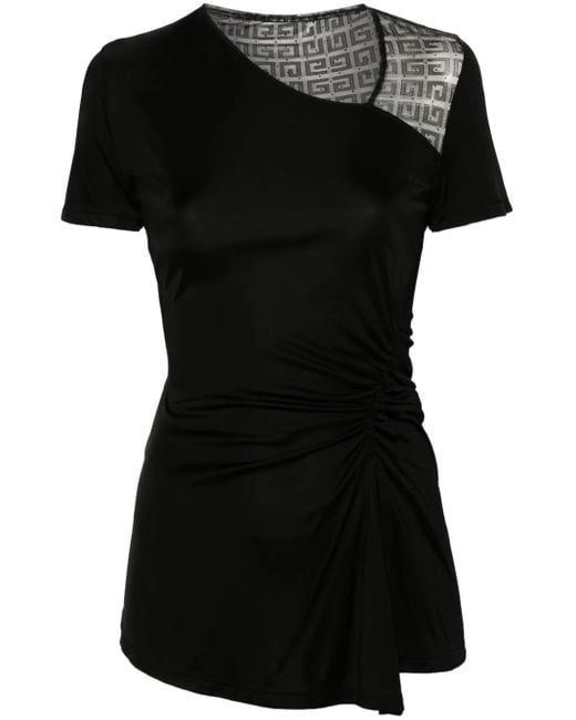 Black stretch-jersey 4G-lace detail asymmetric neck short sleeves gathered and draped detailing straight hem Size: 34. Gender: Female. Material:Polyamide/Viscose/Spandex/Elastane. Colour: black