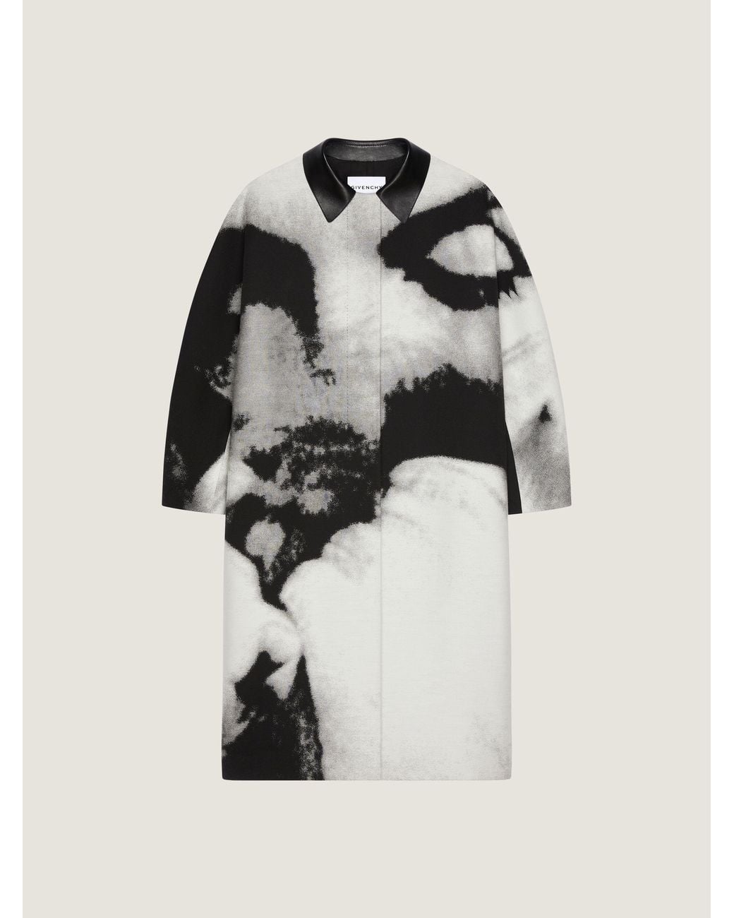 - Car coat in cotton with Portrait jacquard. - Classic leather collar. - Hidden button closure. - Two side pockets.