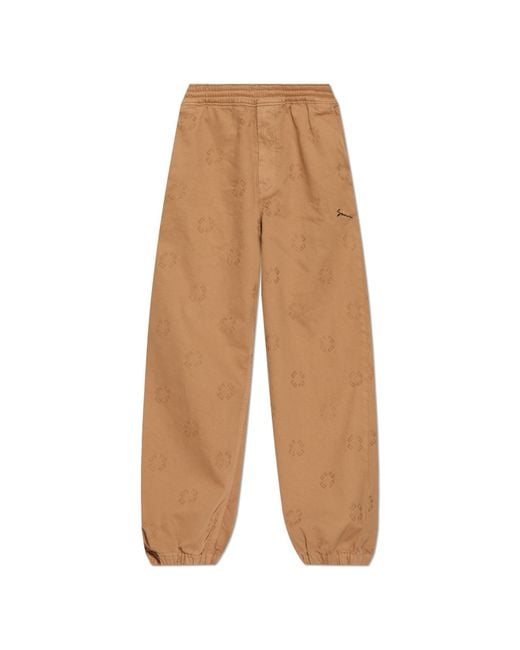 Men's White Cotton Trousers With Logo-Shaped Appliqué