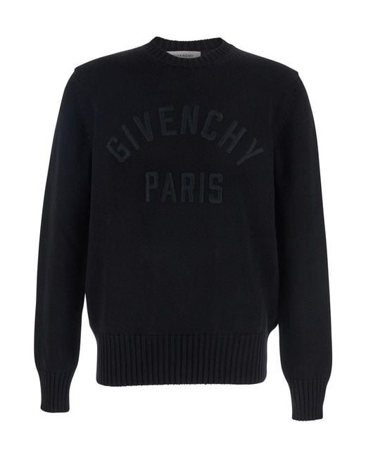 Men's Blue Crew Neck Jumper With Logo Lettering On The Front