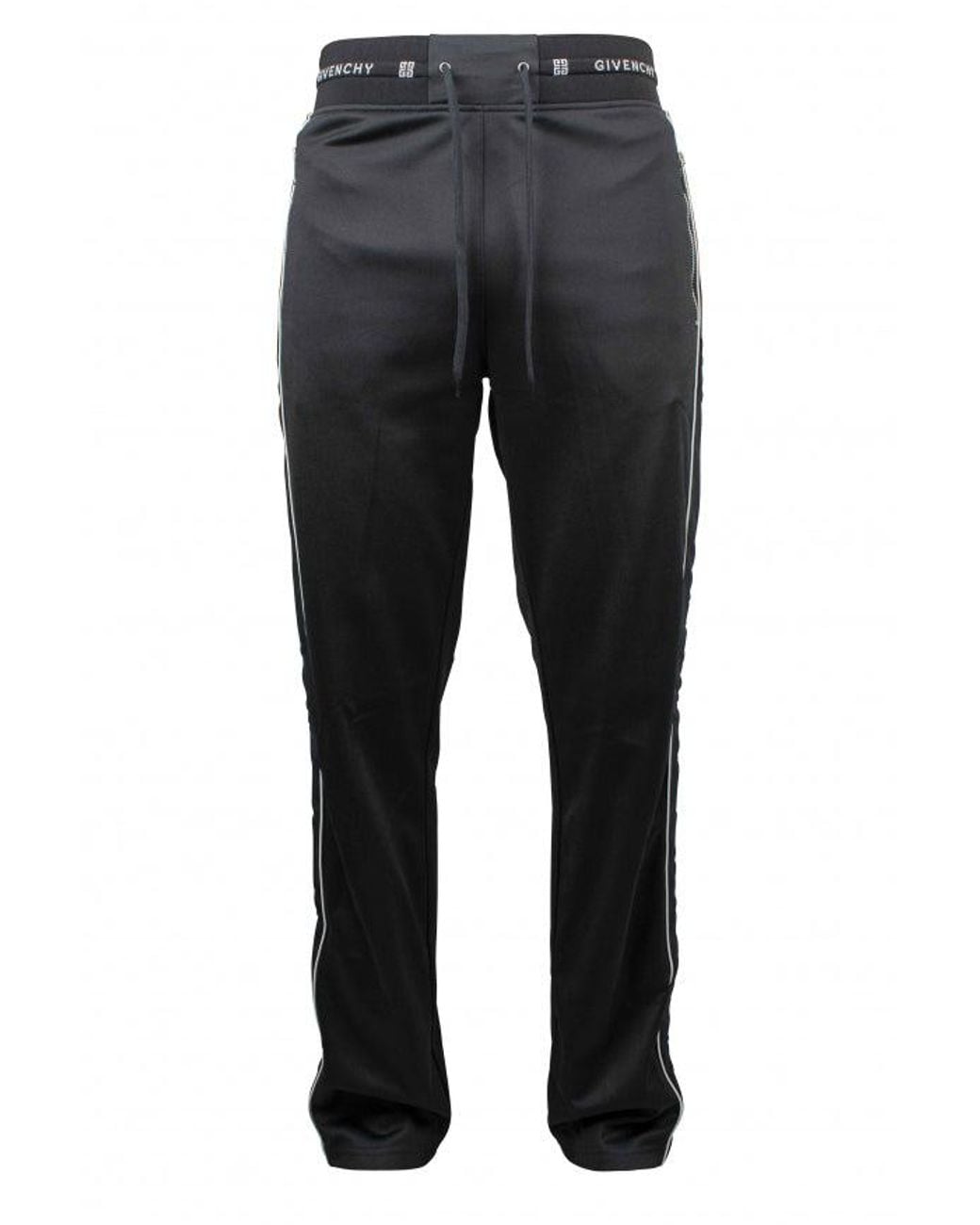 White Givenchy logo at the waist. Two pockets with zipper. Straight waist.