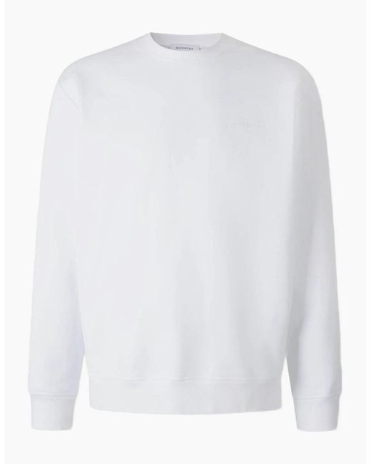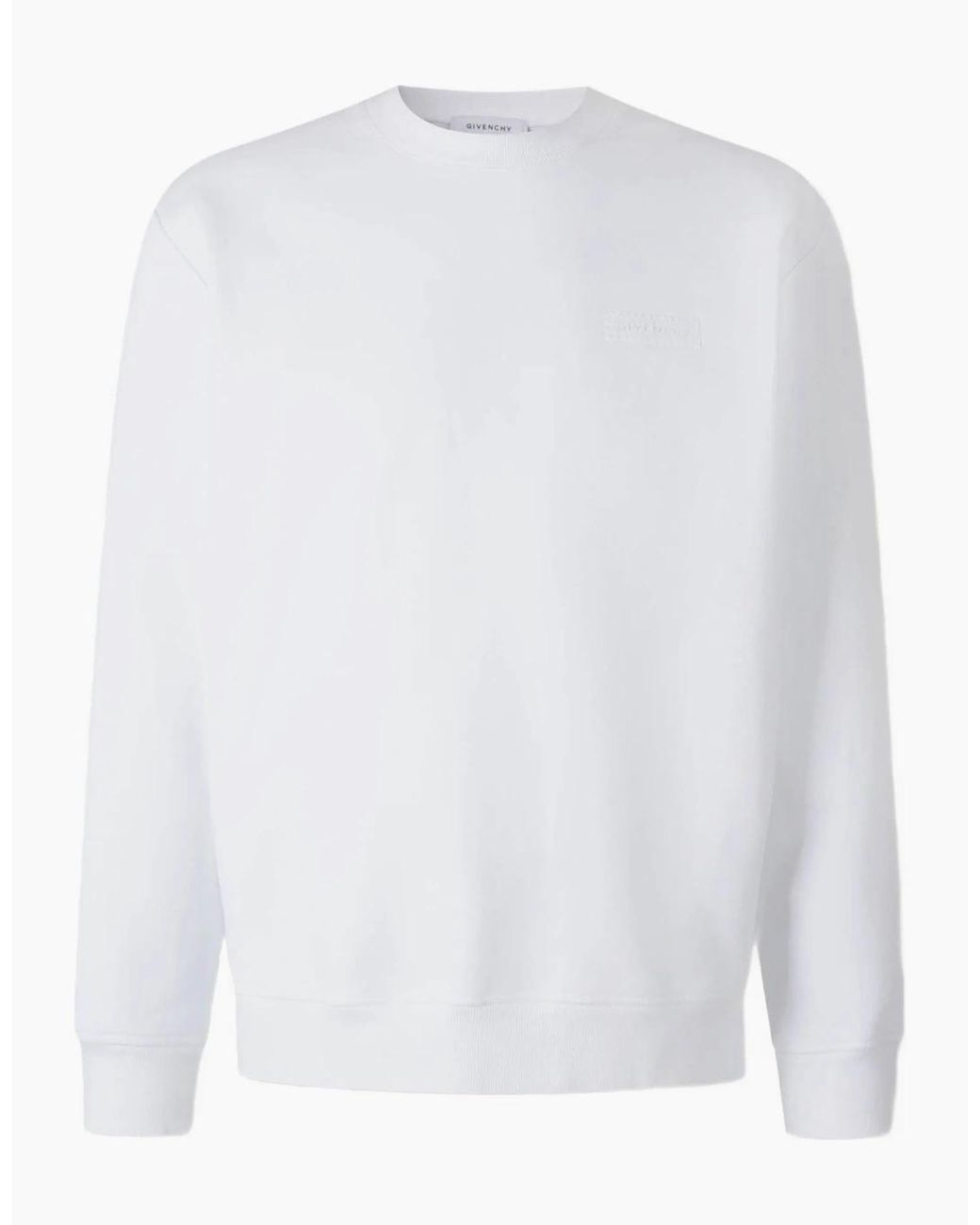 This long-sleeved fleece sweatshirt features a classic crew neck and is detailed with a grosgrain patch on the chest, showcasing the GIVENCHY signature framed by distinctive zigzag seams. The ribbed collar, hem, and cuffs ensure a comfortable, tailored fit while enhancing durability. Crafted for both style and warmth, it balances refined design with everyday comfort. Colour: white